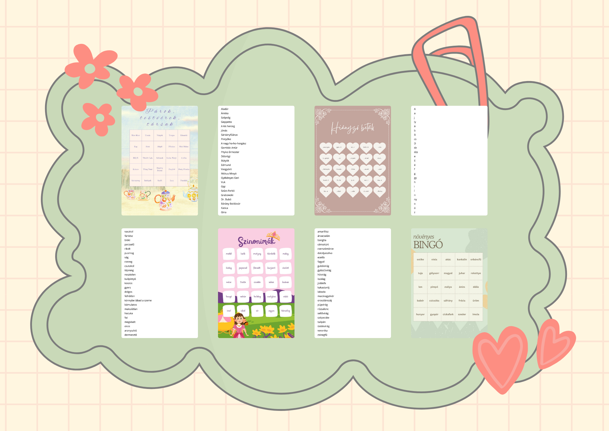 - virágok, növények – betűanalízis