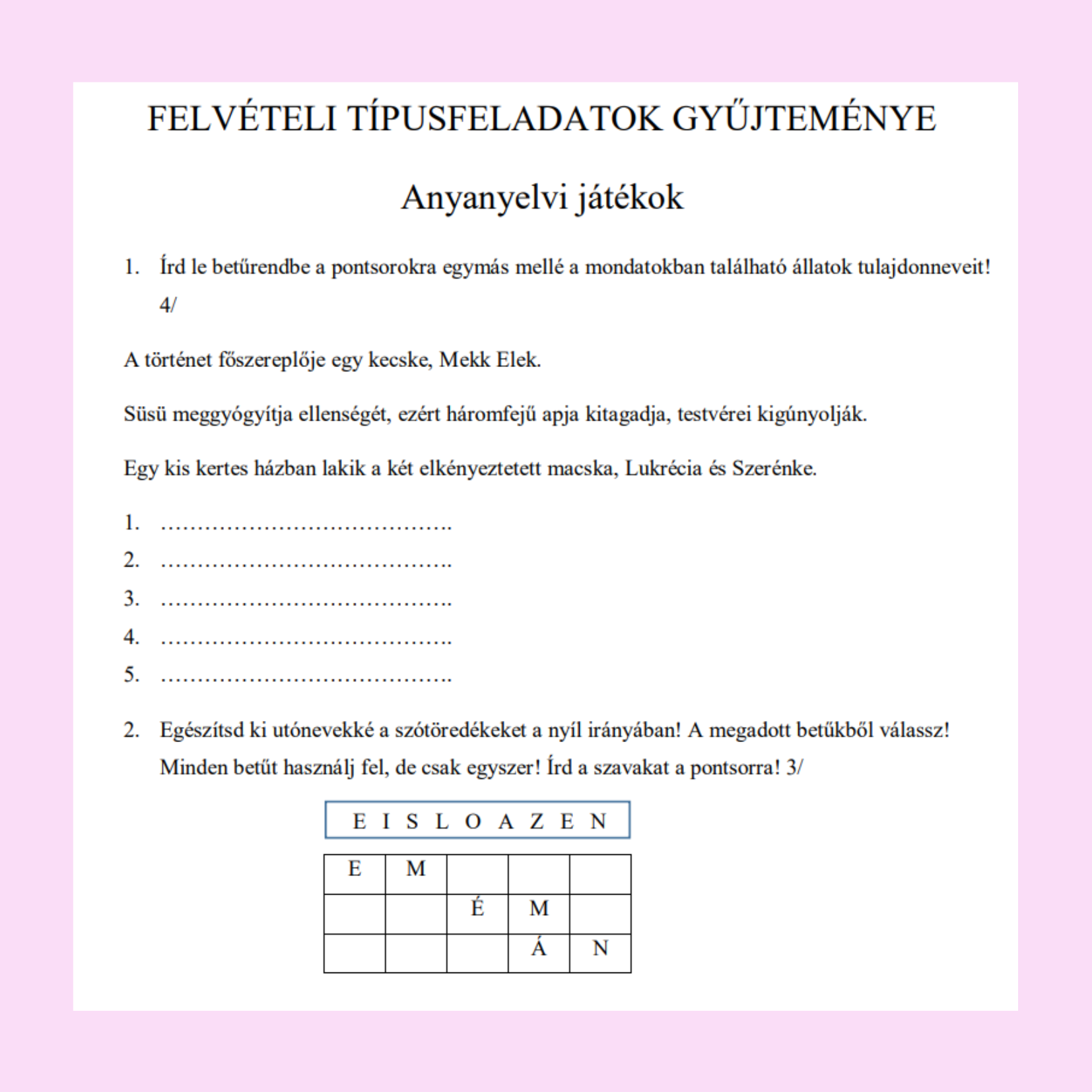 Felvételi típusfeladatok 1. – Nyelvi logika, anyanyelvi játékok 4. osztályosoknak
