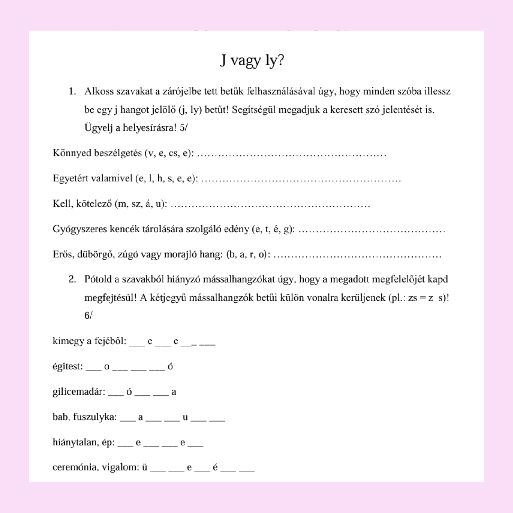 Felvételi típusfeladatok 4. – J vagy ly? 4. osztályosoknak