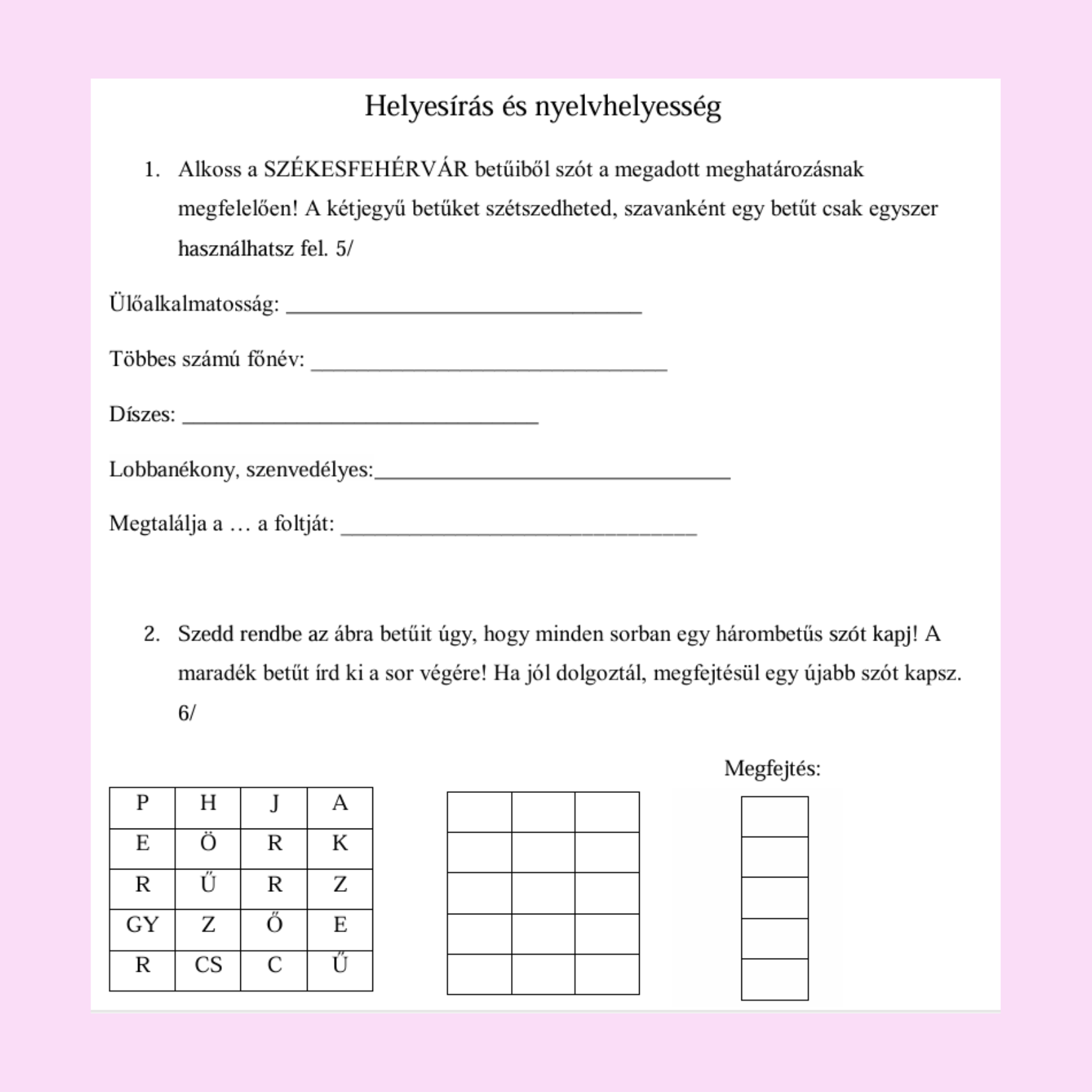 A feladatlap a vizsga egészére gyakoroltat helyesírási feladatlap lévén.