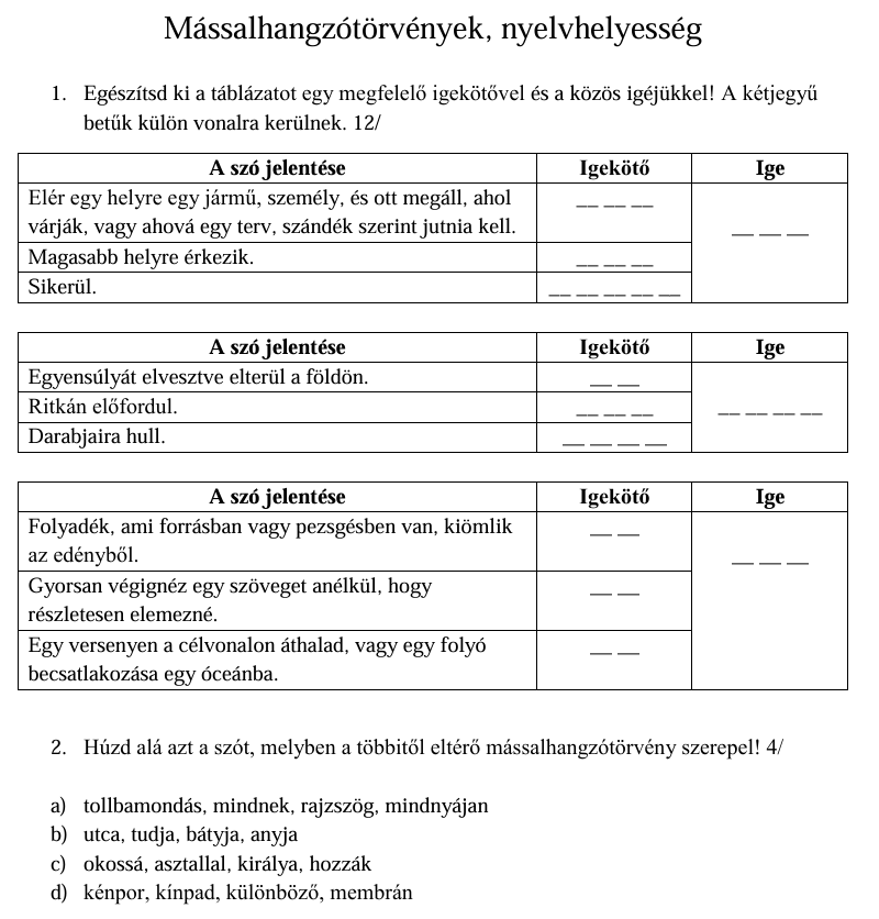 Felvételi típusfeladatok 5. – Mássalhangzótörvények, nyelvhelyesség 8. osztályosoknak