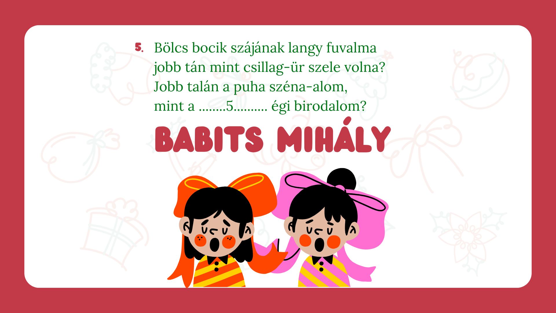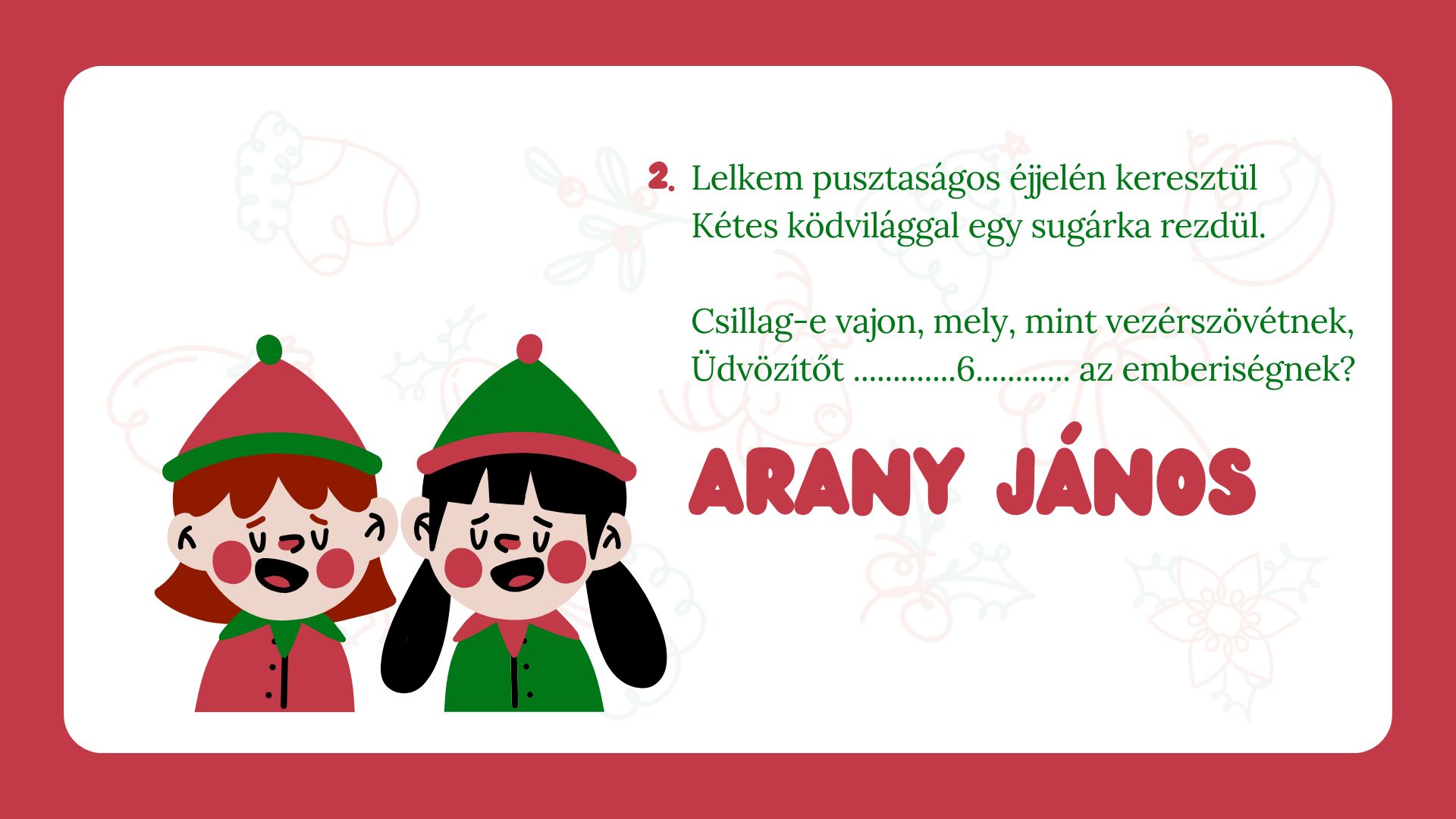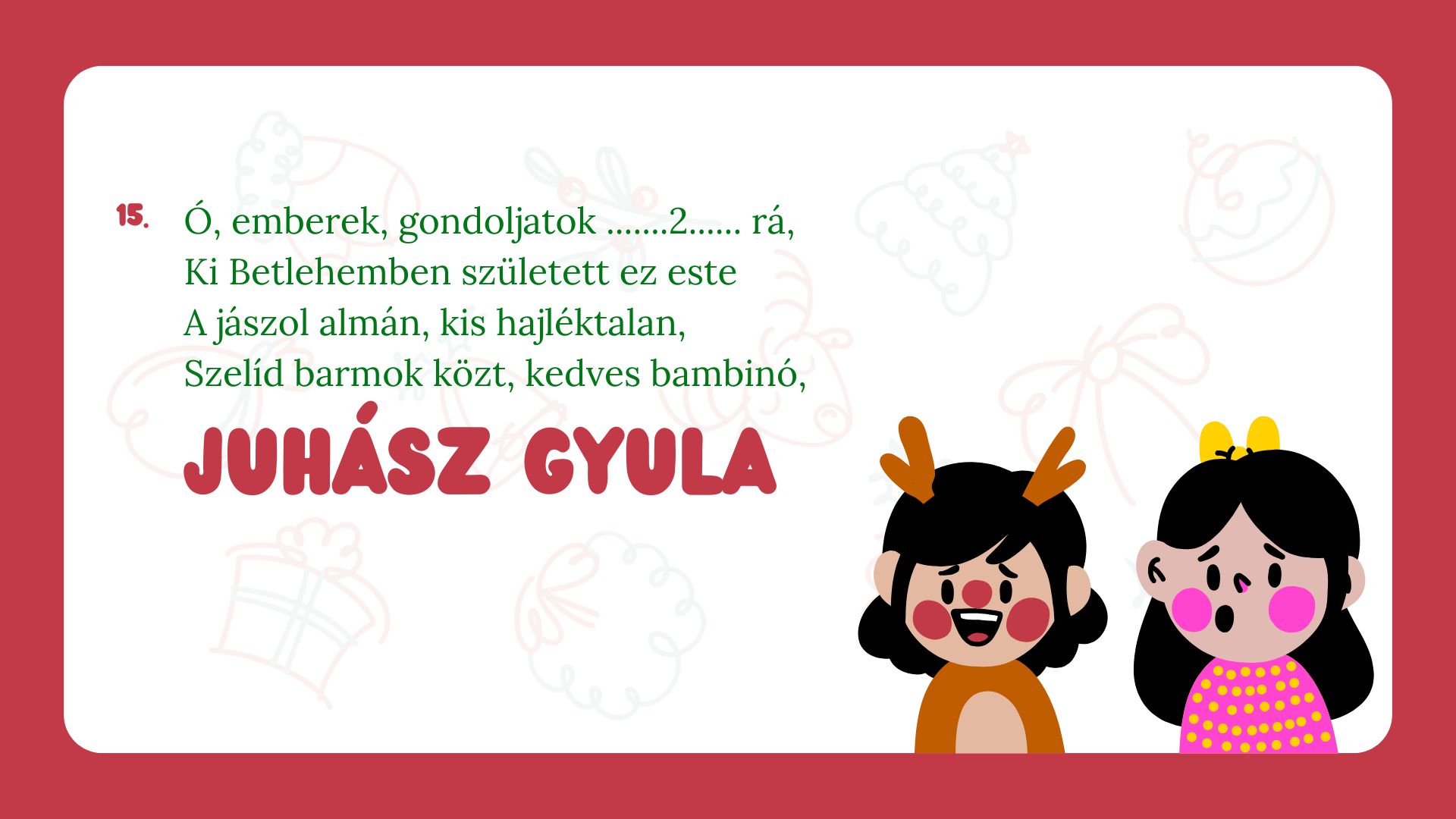 A karácsonyi hangolódás tökéletes kelléke családoknak, felsős osztályoknak.