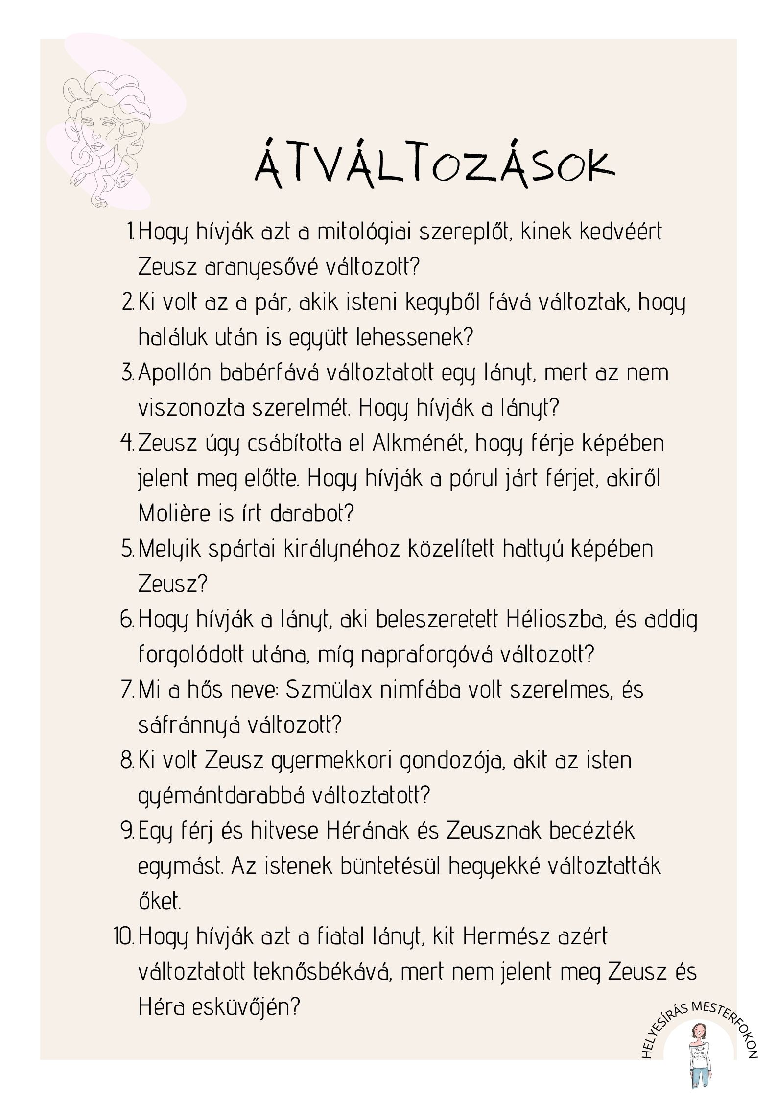 3. Mitológiakvíz + megoldókulcs (születések és átváltozások)