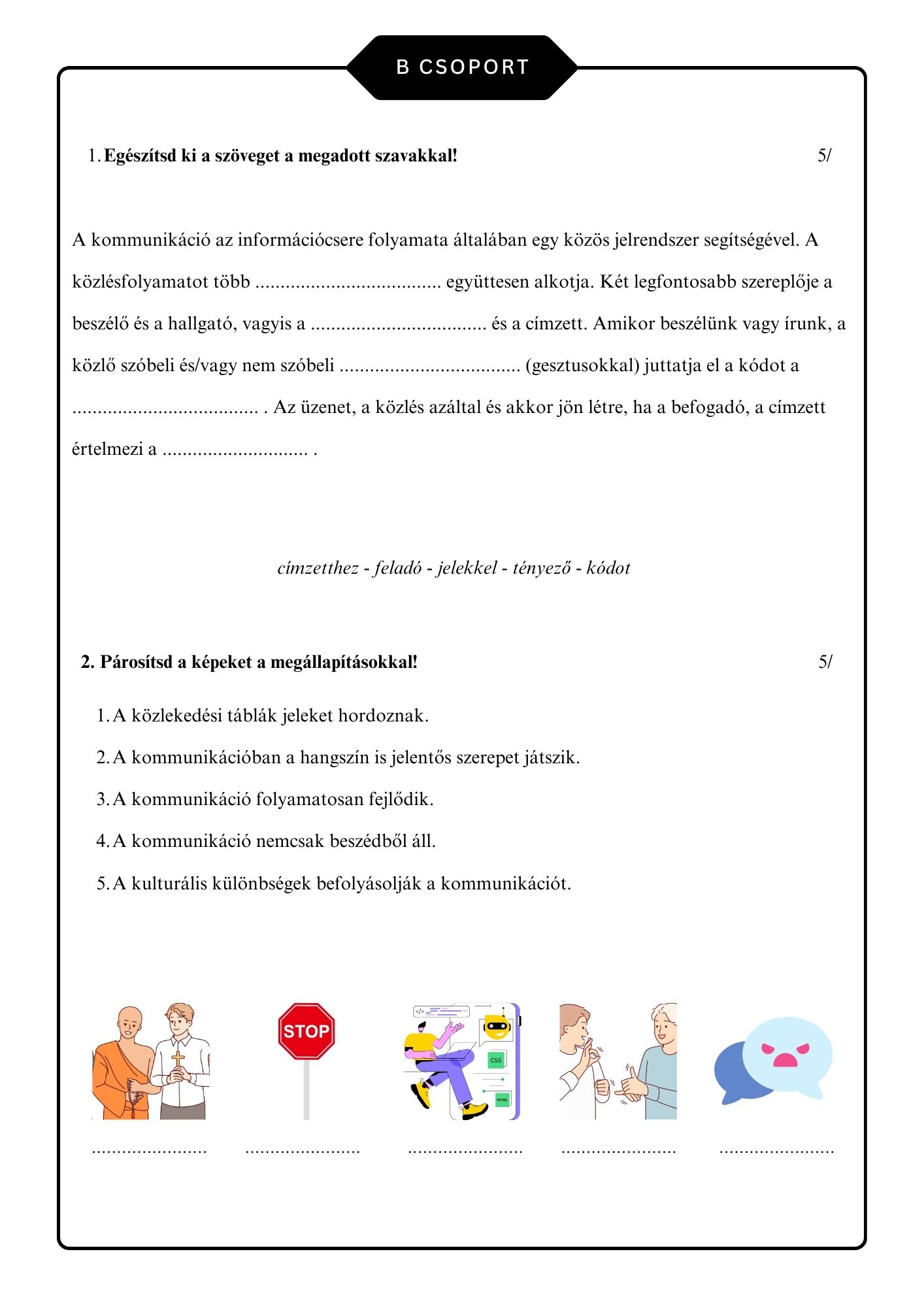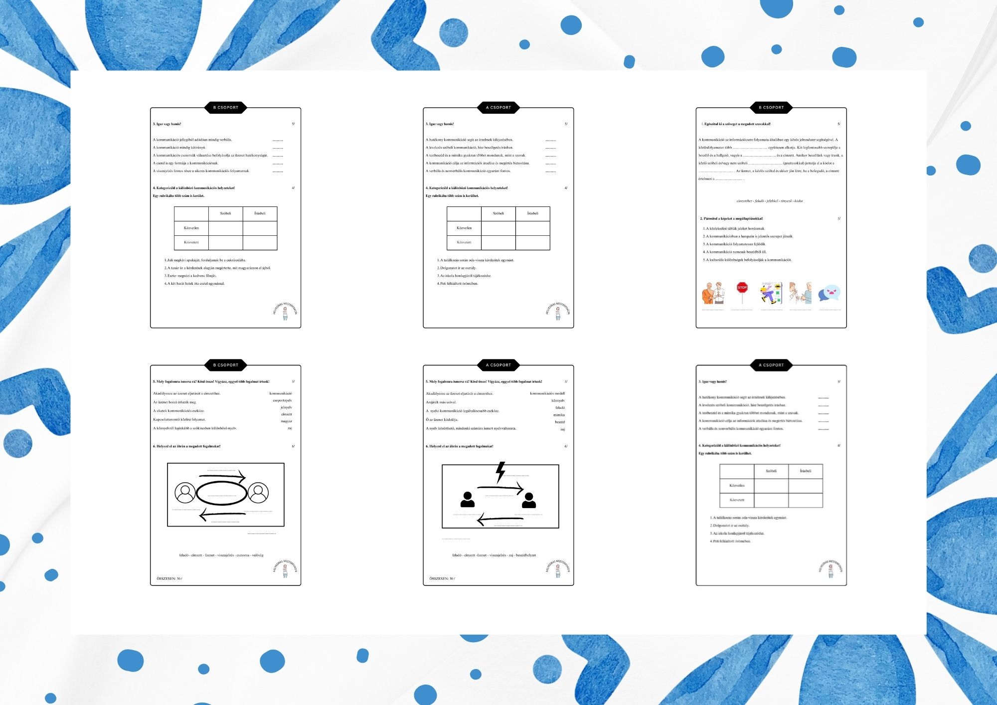 Két különböző, A és B csoportos dolgozat, tudásfelmérő.