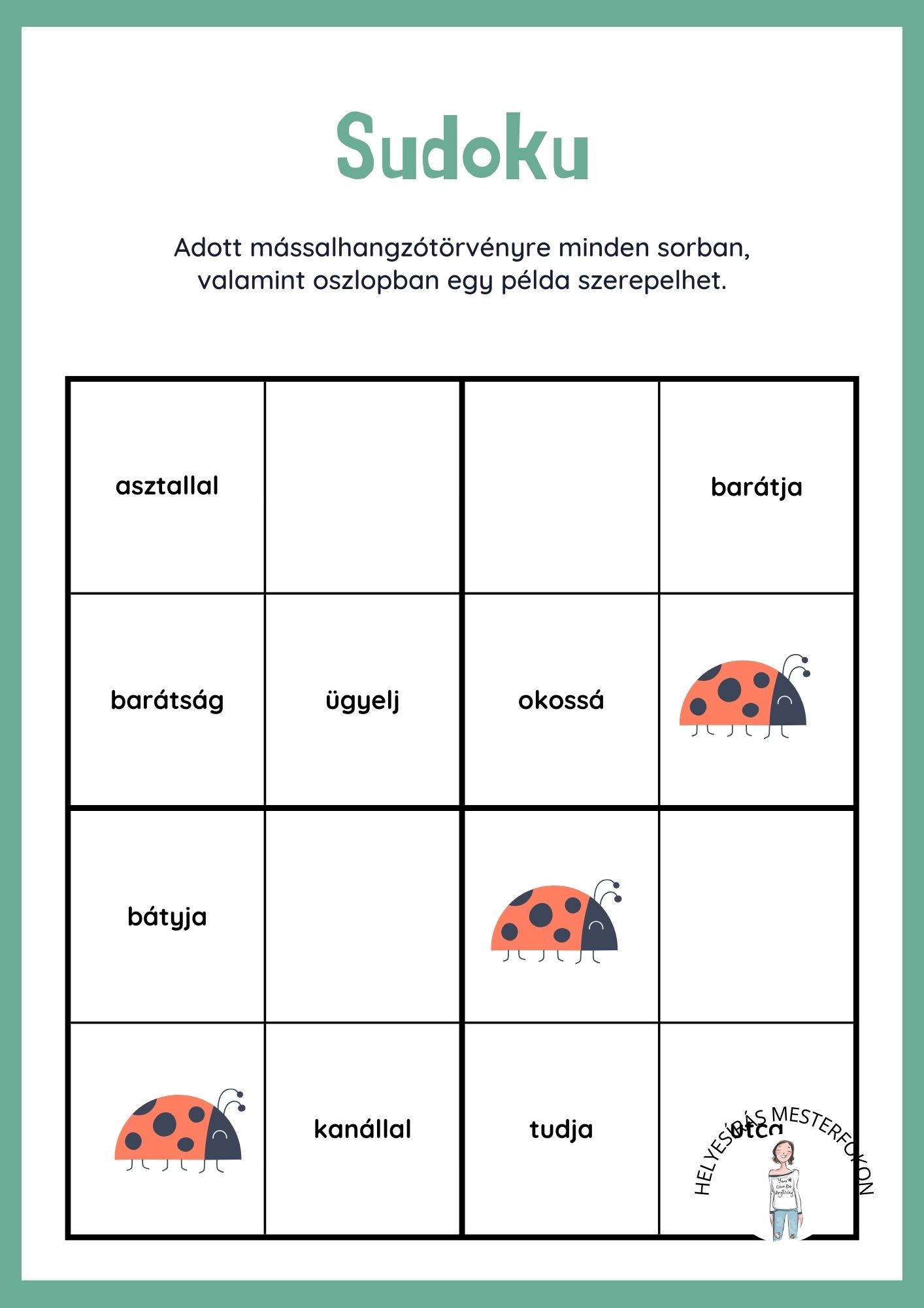 Mássalhangzótörvényes sudoku