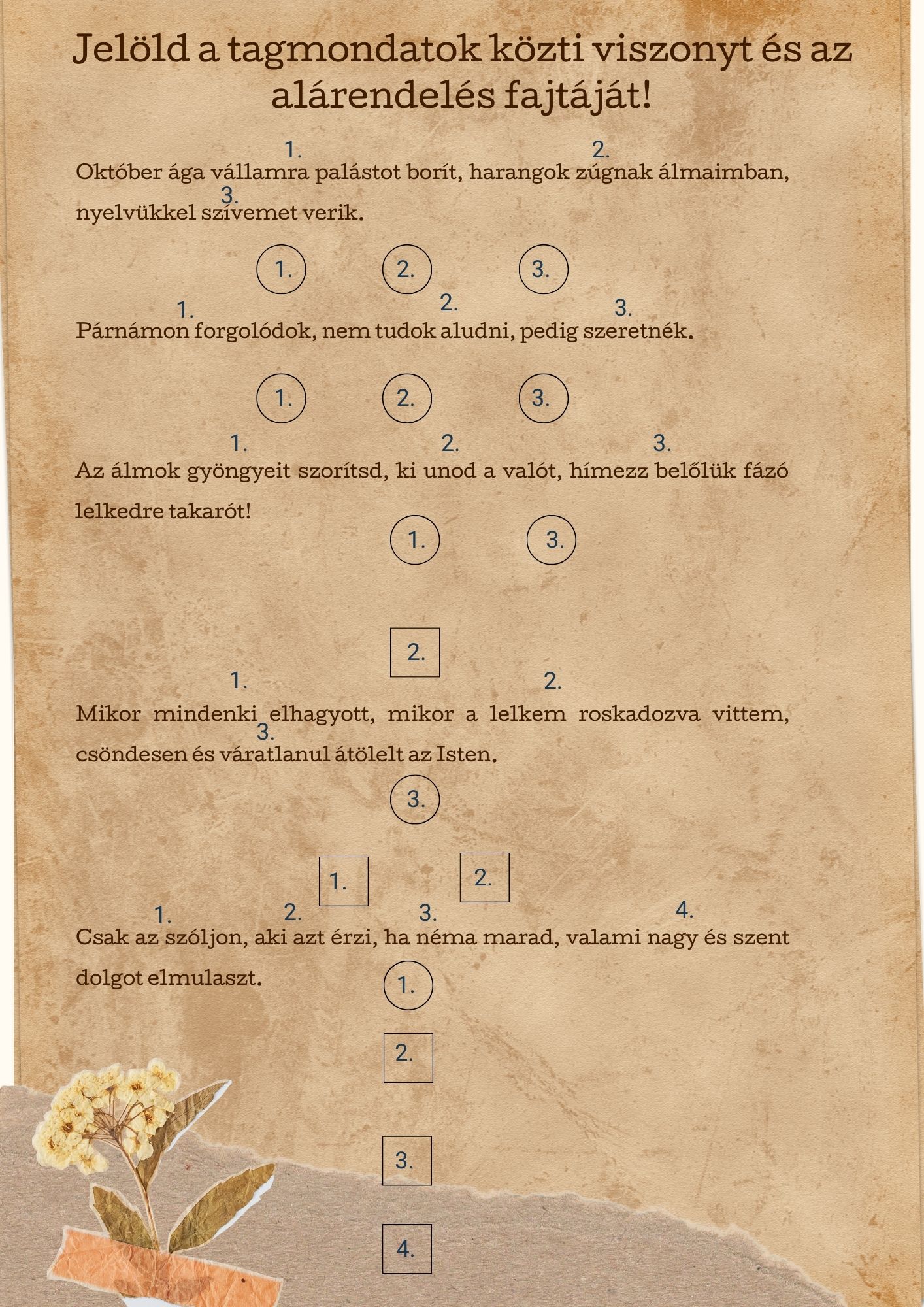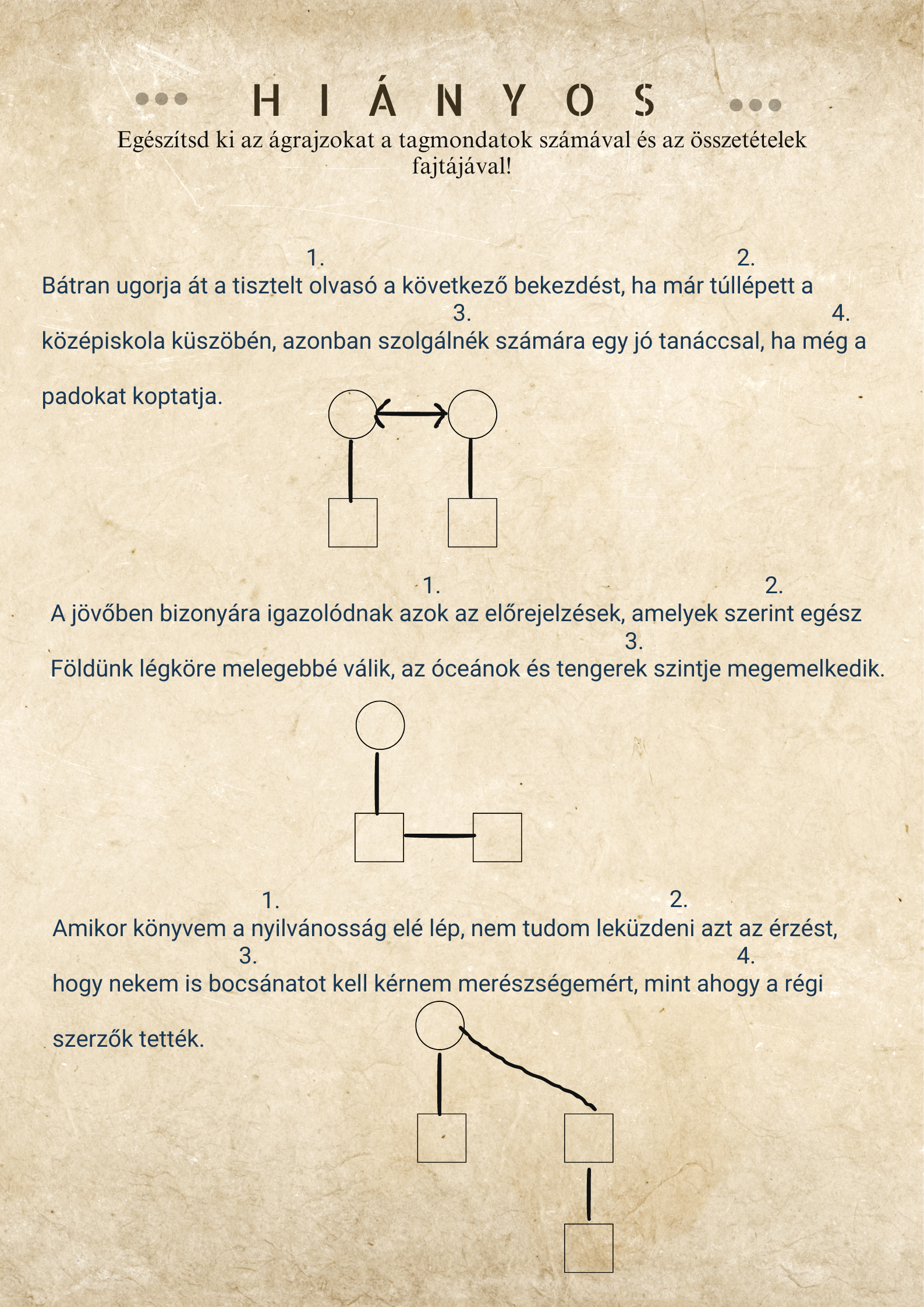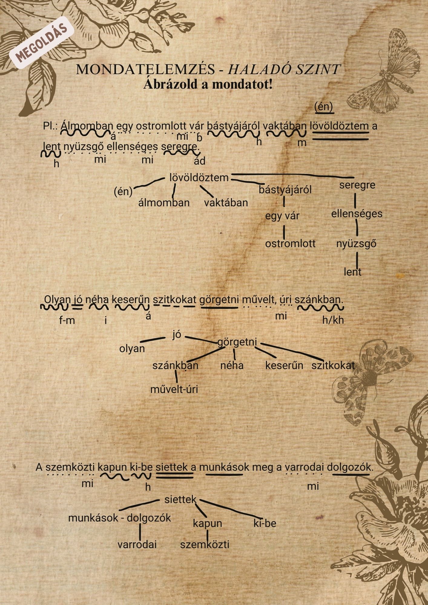 Mondatelemzési gyakorlólapok, haladó szint