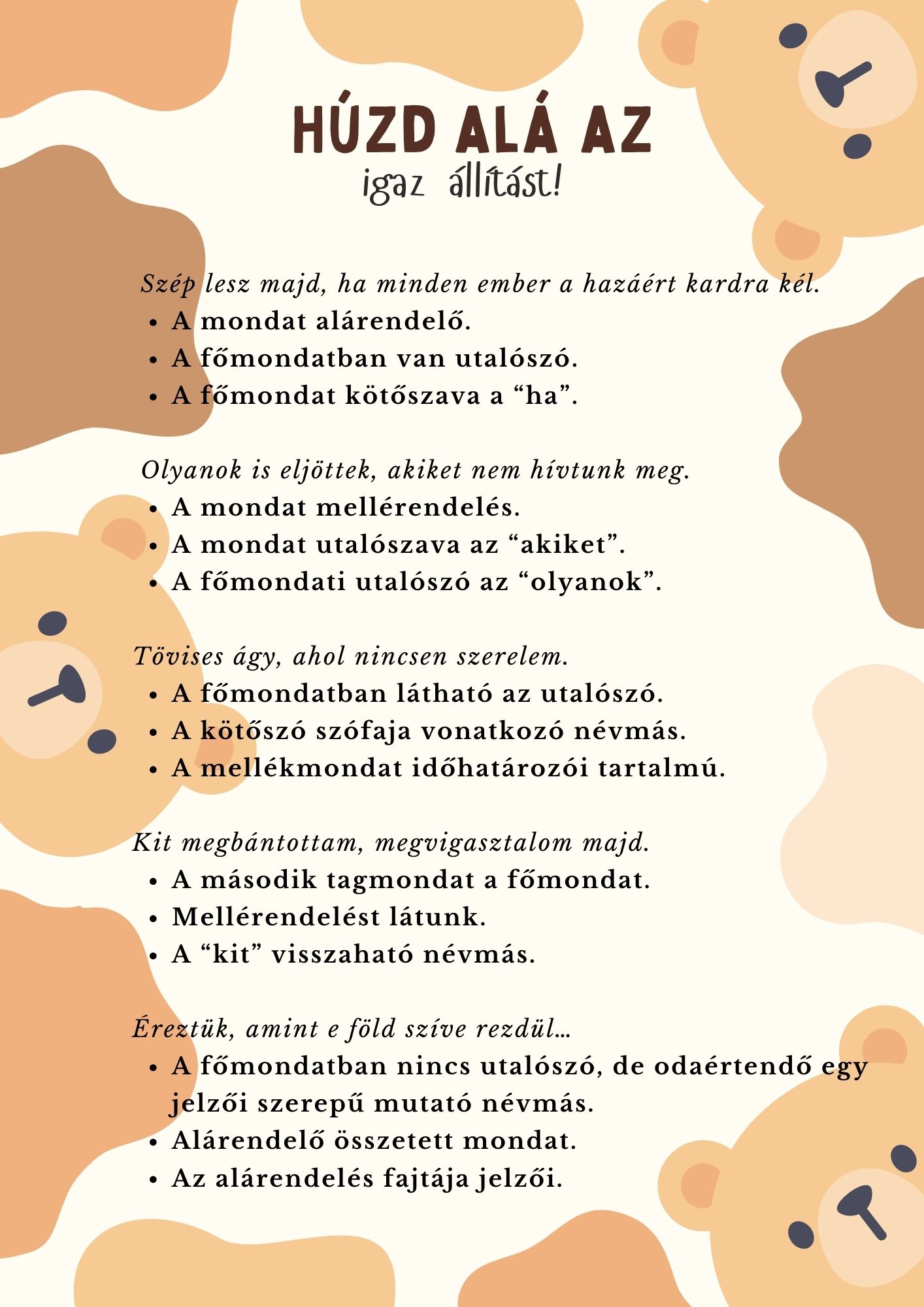 Egyszerű és összetett (alá-és mellérendelő) mondatok elemzését gyakoroltató feladatlapok, megoldással együtt rendelhetők!