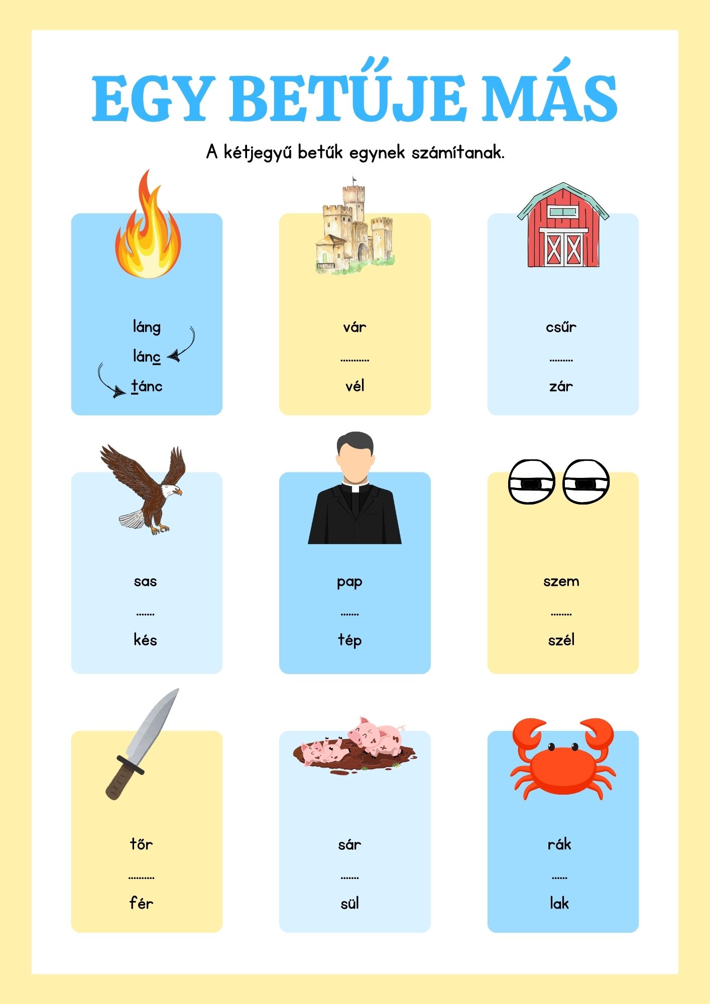 Gyakorolj velünk játékosan, szép grafikával szerkesztett lapok segítségével! Feladatlapunk az előző évek felvételi feladataiból táplálkozik, lefedi a nyelvi logikai feladványok összes eddigi típusát!
