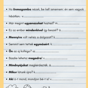 Mondatelemzési gyakorlólapok, haladó szint